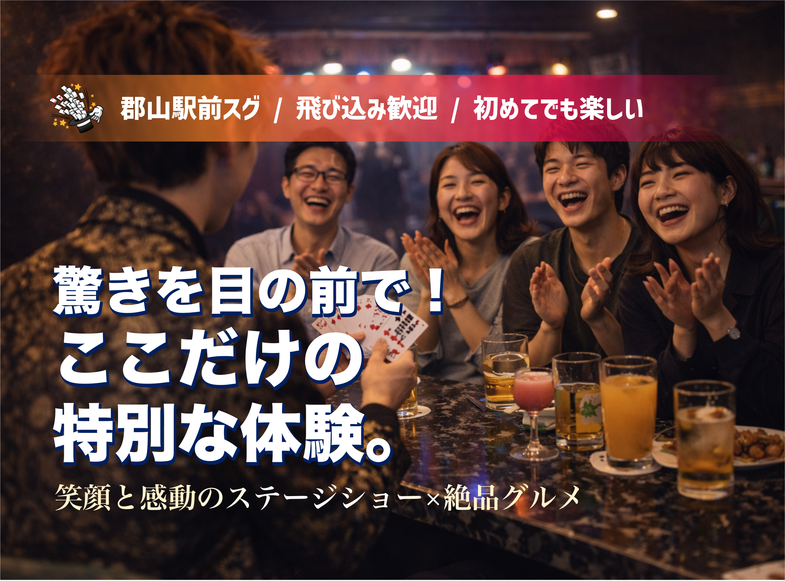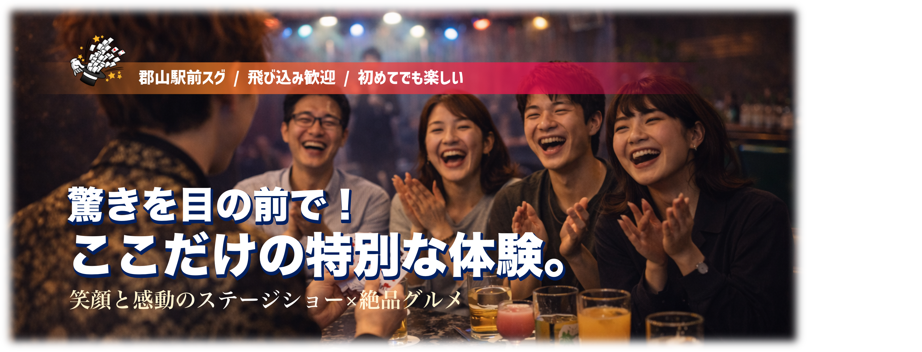 …目の前でゆったりとしたマジックを楽しみながら、特別なひとときを提供します。